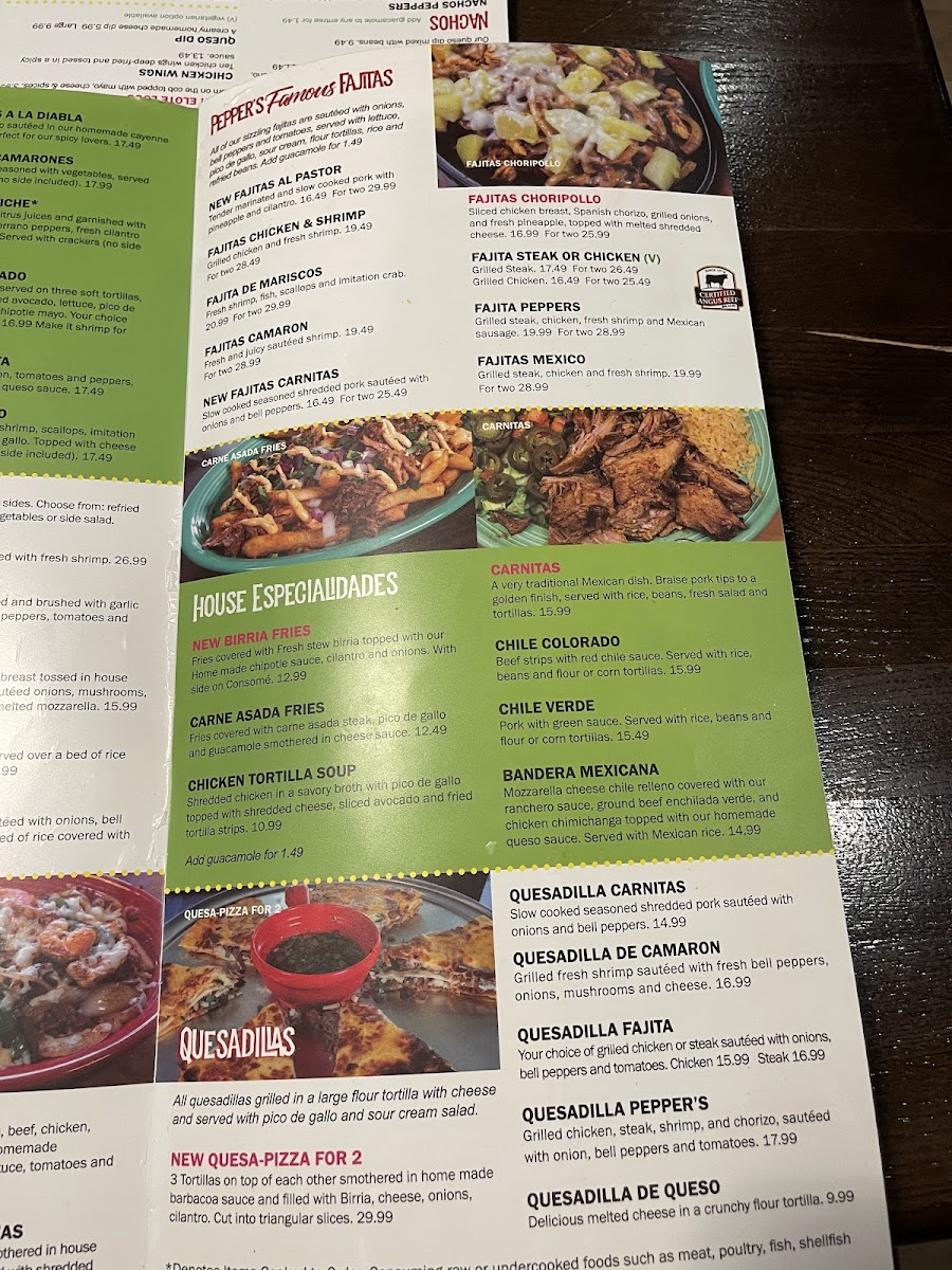 Introducing the Menu at Pepper's Mexican Grill and Cantina